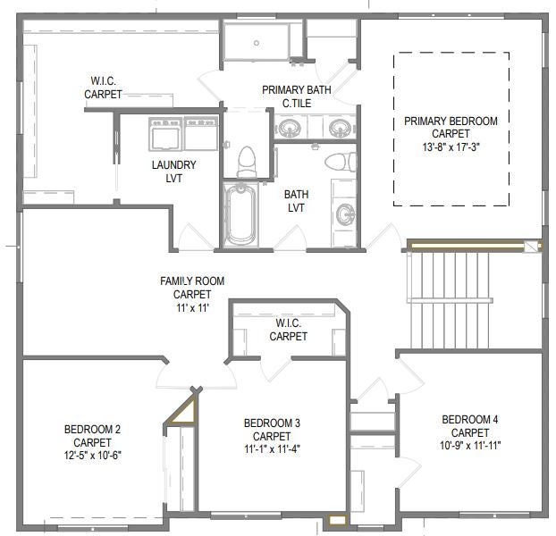 This two-story home features an open-concept main floor designed for effortless entertaining and everyday living. The spacious kitchen includes a large island and walk-in pantry, flowing seamlessly into the dining area and great room. A rear foyer with built-in storage and a conveniently located powder room keeps daily routines organized and efficient. The flex room near the front entry offers the perfect space for a home office, playroom, or guest bedroom. Upstairs, The Juneberry continues to impress with a centrally located family room—ideal as a media room, homework zone, or cozy retreat. The private primary bedroom includes a walk-in closet and a dual-vanity bath for a relaxing escape. Three additional bedrooms, a second full bath, and a laundry room complete the upper level, providing comfort and convenience for every member of the household.