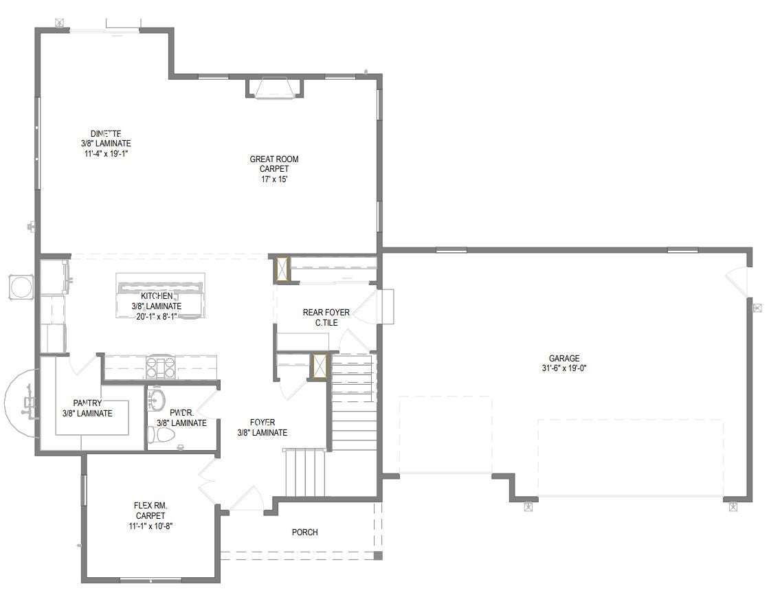Step into the Acacia, where thoughtful design meets modern living. The inviting front porch leads into a spacious entryway, complete with a flex room, perfect for a home office, playroom, or additional lounge space. Moving further inside, a convenient powder room sits near the rear foyer, which connects seamlessly to the garage for easy access.