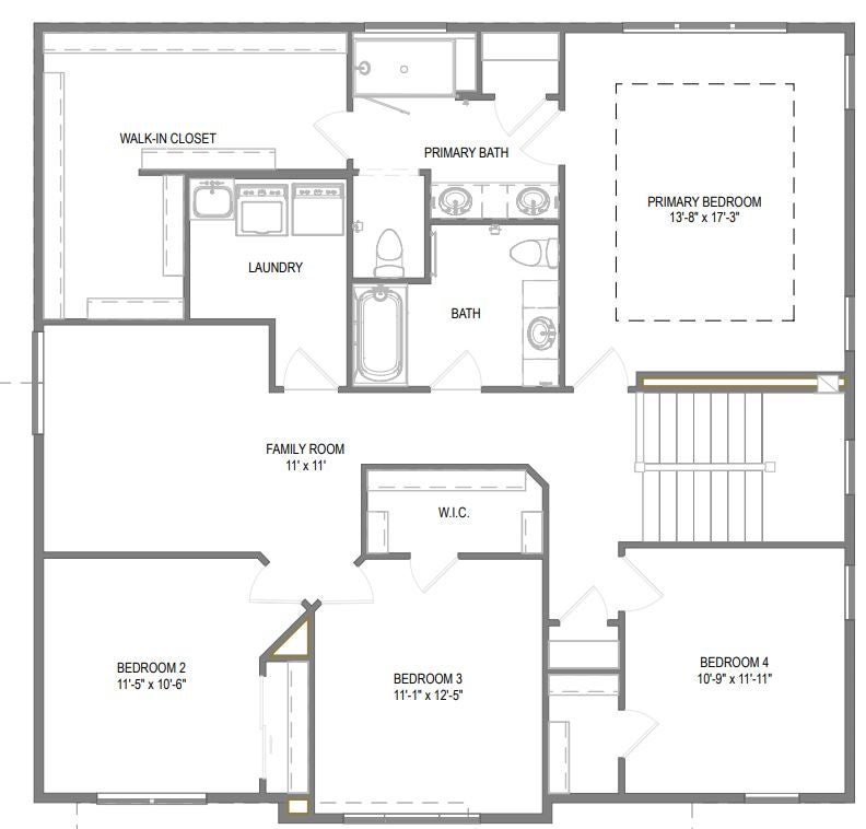 Upstairs, the Juneberry offers a thoughtful second-floor layout designed for comfort and connection. The primary suite features a large bedroom, private bath with dual sinks, and a roomy walk-in closet. Three additional bedrooms are grouped together nearby.